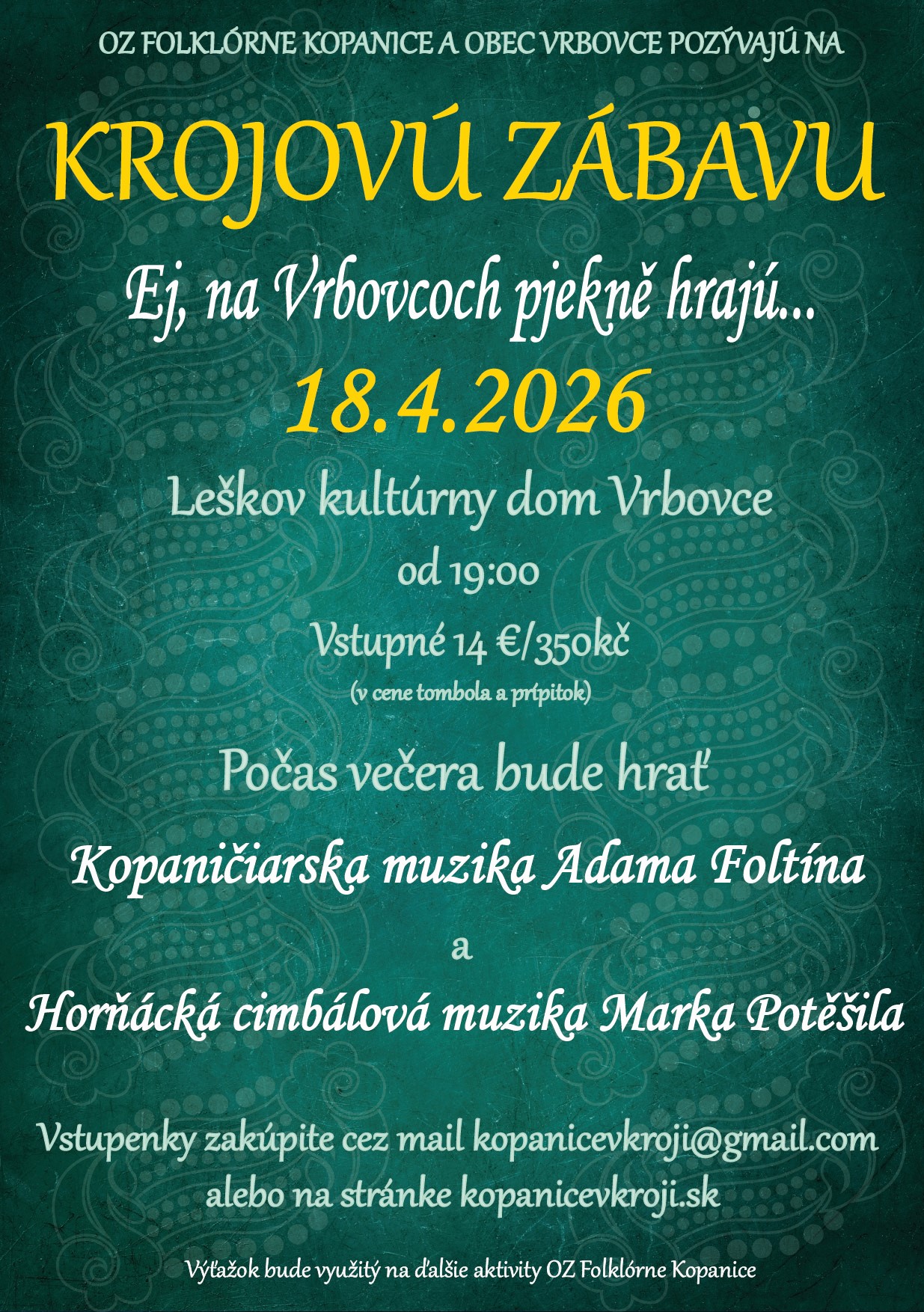 Srdečne Vás pozývame na 4. ročník krojovej zábavy na Vrbovcoch!